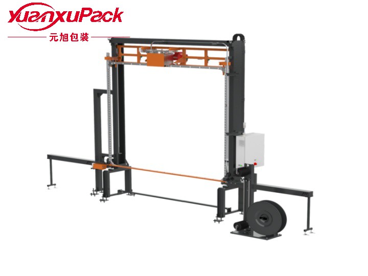 穿箭机构由两侧往中间移动对接完成送带闭环,适用于产品/输送线宽度/转台直径超过2000mm物料穿件打包,解决穿件过程中箭槽太长造成的物理下坠引起的穿件故障